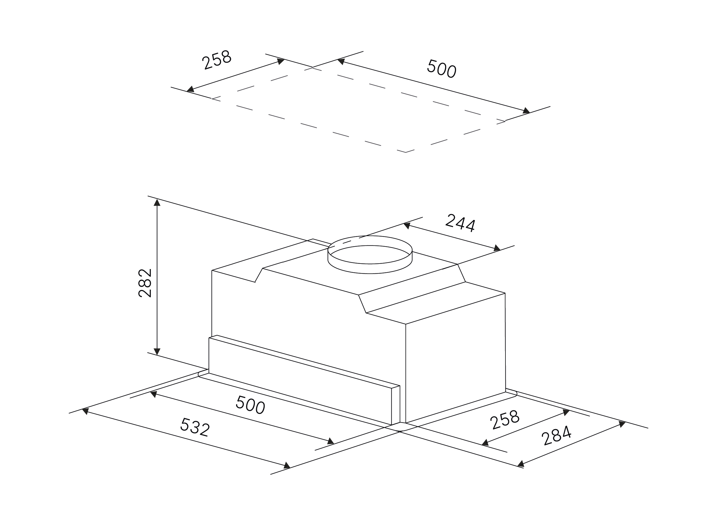 קולט אדים מובנה בגודל 53 ס"מ עם 4 רמות עוצמה