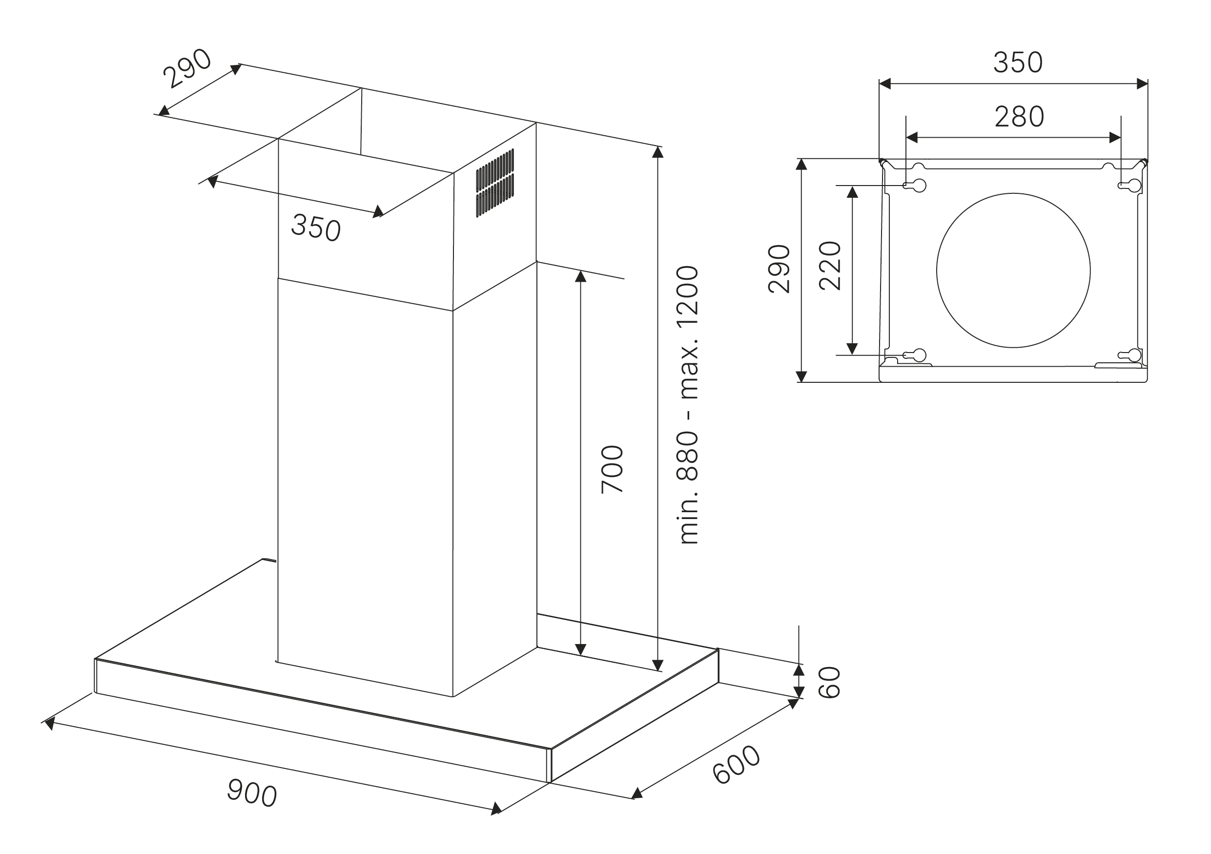 קולט אדים אי בגודל 90 ס"מ עם 4 רמות עוצמה
