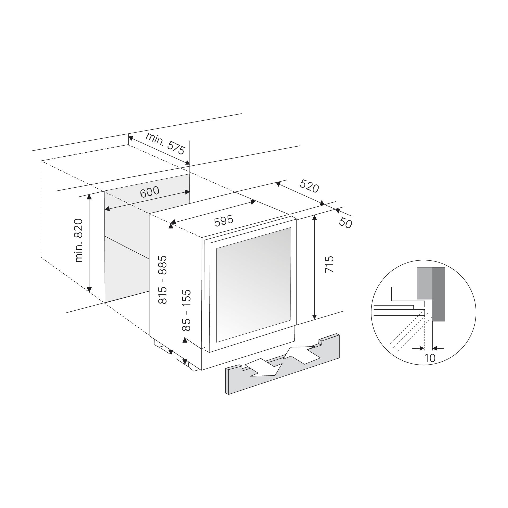 • ניתן להתקנה מתחת לדלפק, נין להסיר את רשת איוורור הקדמית